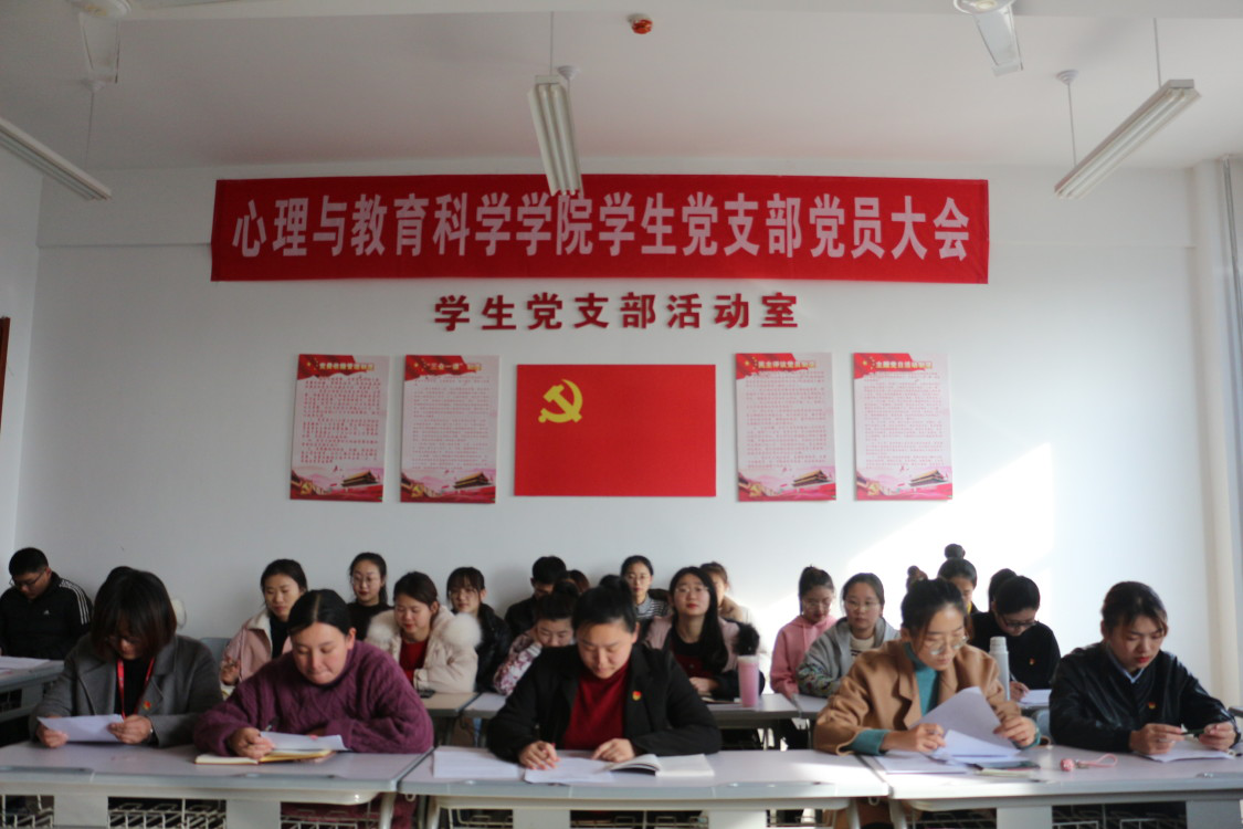 12月3日,BB贝博艾弗森官方网站党支部于教师教育楼302室召开党员发展暨转正大会。学院党支部全体成员,预备党员申请人、预备党员转正申请人参加会议,会议由学生党支部书记靳昕主持。
