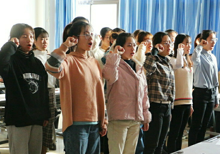 会上,发展对象宣读了入党志愿,预备党员宣读了转正申请,按照入党流程,学生党支部进行了充分讨论,最终决定接收褚静等14位同志为预备党员,周燕燕等13位同志为正式党员。褚静代表新接收预备党员作表态发言,新党员佩戴党徽面向党旗庄严宣誓。