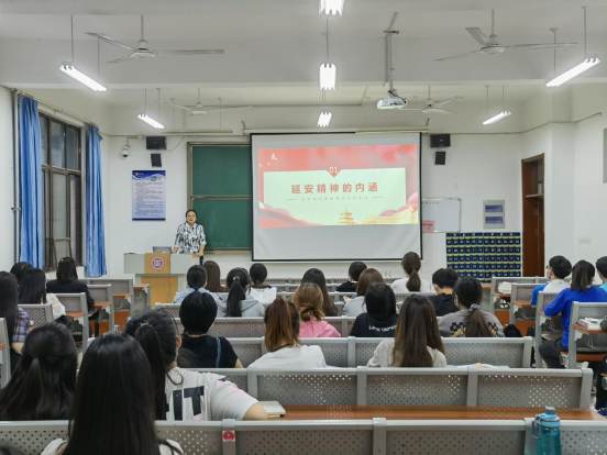 最后,安洪涛简要介绍了延安精神的组成和发展历程,延安精神的不断发展也映射出中国共产党的发展历史。同时她提出当代青年大学生入党必须具备的心理素质与党性修养,延伸到党的理想信念,充分阐述了青年大学生入党的时代意义。同学们纷纷表示要牢记使命,将这种责任浸润到生活当中,切实承担起“弘扬延安精神,勇担时代使命”这一重大责任。