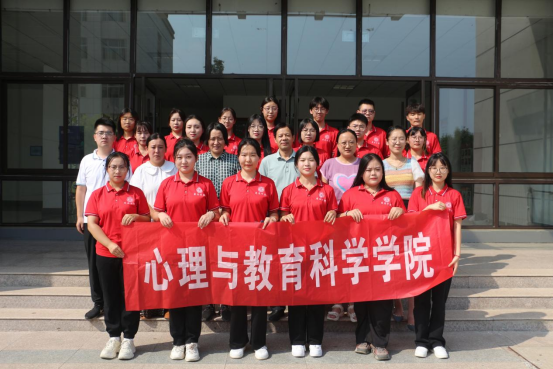 座谈会开始前,与会领导与支教学生在教师教育楼前合影留念。