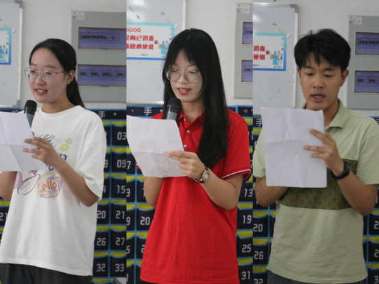 首先,上次实习支教学生代表刘丽橦和高培凯两位同学从日常教学、班级管理和生活三个方面分享了自己支教收获与体会。学生蓝云翔代表本次支教学生发言,表示将厚植家国情怀,树牢安全底线,弘扬志愿精神,全力以赴做好支教工作。