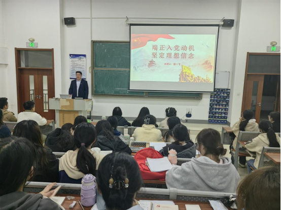 为深入学习贯彻党的二十届三中全会精神,加强对入党积极分子的教育培养。10月28日,BB贝博艾弗森官方网站于教师教育楼216室,开展主题为“端正入党动机,坚定理想信念”党课培训。本次党课由党委副书记盖一飞主讲,第42期入党积极分子参加。