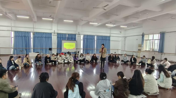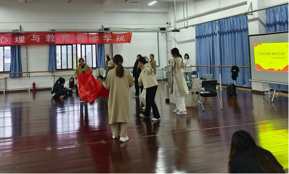 首先,第一个板块“初心相连”中,靳昕引导入党积极分子以入团时间为共同点进行分组,学员们通过动作表达的形式自我介绍和分享入团时的记忆。帮助学员们增强政治身份认同感,树立正确的入党初心。接下来的第二个板块“榜样的力量”采用小组合作形式,学员们各自分享敬仰的优秀党员事迹,学习榜样精神。通过讲述榜样事迹,感受榜样的力量,从中汲取前行的动力,激励自我不断提升党性修养,坚定理想信念。在最后一个板块“薪火相传”中,全体学员以红绸为道具,小组合作创作了红色主题音乐舞蹈剧。生动分享演绎了如何传承红色基因、赓续红色血脉,深化了对革命精神代代相传的理解。在全体起立共唱国歌的庄严氛围中,团体辅导圆满结束。