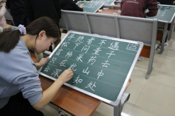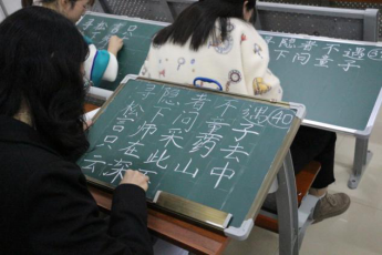11月4日下午,第二届师范生粉笔字比赛于教师教育楼216室举行,省基层人才挂职研究人员黄昌伟、书法教师陈超、教师高建风、满建宇、陶宇、陈明担任评委,通过各班初赛推选出的70名优秀选手参加了本次比赛。