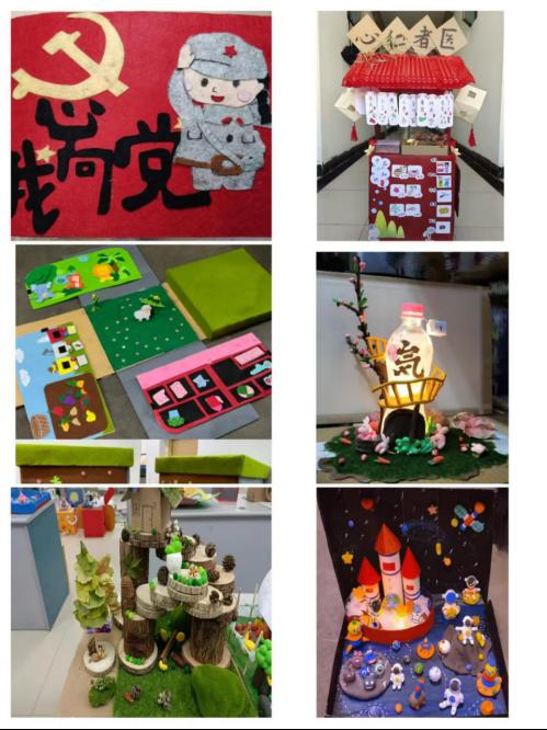 经过充分准备,同学们慧心巧思,收集了多样材料,利用空余闲暇时间,各出奇招,将个人智慧完美融入,制作出一件件构思巧妙、形式各异、颜色鲜艳、造型美观的精美自制玩教具,制作过程中展现了大学生勇于创新的精神。本次参赛的作品包含手工环创作品、自制布书、多功能益智玩具等多种类型。学生从教育价值、制作材料、造型设计、多变玩法等角度进行创新,并在作品融入中华优秀传统文化、新时代社会主义核心价值观等元素,充分体现了学生良好的师德修养和综合育人的意识。