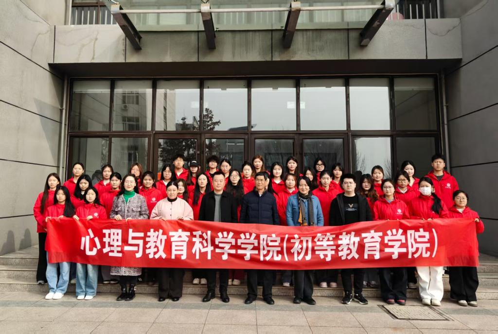 会后,学院党政领导、辅导员、班主任代表、2025年春季援疆支教全体学生在教师教育楼前合影留念。