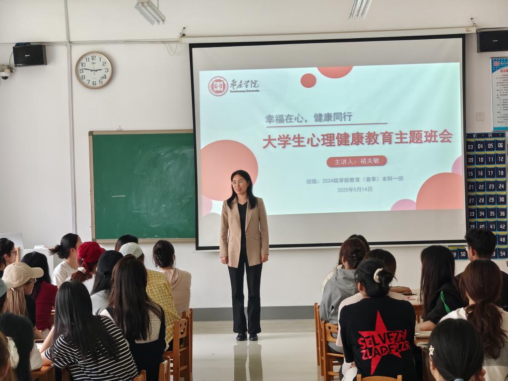 班会创新设置五大沉浸式环节,推动心理健康教育入脑入心。褚夫敏充分肯定了主题班会的丰富内容及成效,详细询问了新学期以来同学们的学习、生活、思想动态,并围绕马斯洛需求层次理论,对大学生提出四点建议:一要多读书,系统了解专业的基本理论,拓展跨学科的视野;二要多思考,特别要进行深度思考,不断探索自我,提高核心竞争力;三要多交流,学会与人沟通,提高人际交往能力;四要多锻炼,增强身体素质,磨炼意志品质,增强获得感。