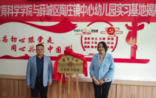 随后,我院师生共同参加了揭牌仪式。孙成全与傅金兰一起为实践教学基地进行揭牌。同时表示:希望陶庄镇中心幼儿园将不负重任,一如既往,继续抓队伍建设,走好强师强园之路;进一步加强学校之间的合作与交流,真正实现校际间的资源共享,共同发展,实现互利共赢。