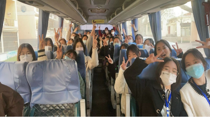 见习结束,带队老师与学生在教学楼前合影留念。