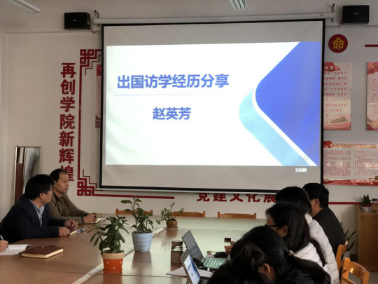 12月18日下午,BB贝博艾弗森官方网站在教师教育楼215室举行国外访学经验交流会,赵英芳老师分享了在美国克莱瑞恩大学访学一年的经验和收获。交流由傅金兰院长主持,全院教职工参加。