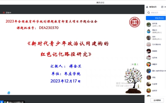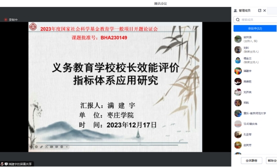 2023年12月17日,我校以腾讯会议的方式举行2023年度全国教育科学规划课题开题论证会。