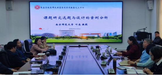 4月10日下午,我校“名师大讲堂”系列学术报告第三十七讲在市中校区综合楼三楼报告厅成功举办。南京师范大学叶忠教授应邀做客本次名师大讲堂。BB贝博艾弗森官方网站全体教师40余人参加会议。报告会由院长傅金兰主持。