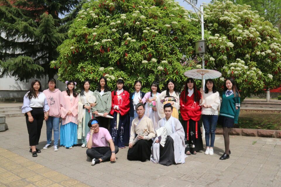 为开拓视野,丰富校园文化,落樱街动漫社于4月15日11:30-15:00在一餐前小广场举办了汉服花韵活动。