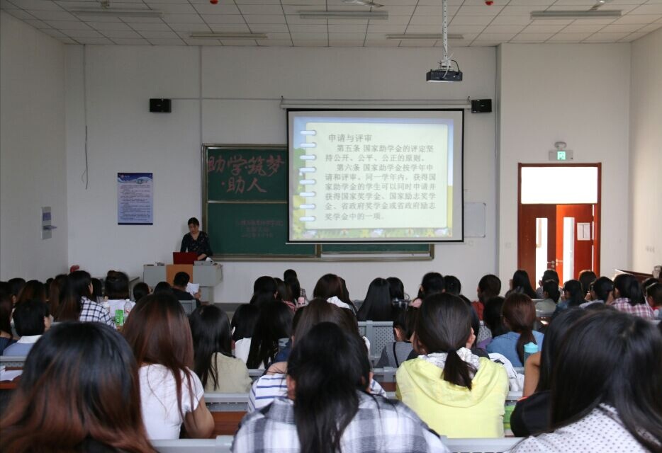 主题教育活动上,主持人介绍了各类助学金发放要求,朗读了甘肃定西残疾学生魏祥同学向清华大学求助信件以及清华大学给魏祥同学的回信,播放了东南大学学生资助管理处的励志短视频。随后,枣庄学院学生资助宣传大使徐文娇同学从助学金发放与管理、申请与评审、资助标准与申请条件这三个方面对国家资助政策进行了解读。