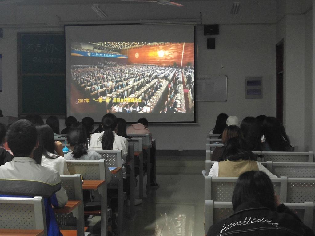 为进一步宣传贯彻十九大精神,增强青年学生的民族自尊心和自豪感,弘扬伟大的民族精神和传统美德,培养当代大学生爱国主义精神,我院应学校要求积极开展了“不忘初心跟党走”为主题的爱国主义教育活动。17级学前教育专科一、二班于5月6日晚开展了“不忘初心跟党走”主题班会,观看大型纪录片《厉害了,我的国》,让学生们参与了一堂特殊的“思想教育政治课”。