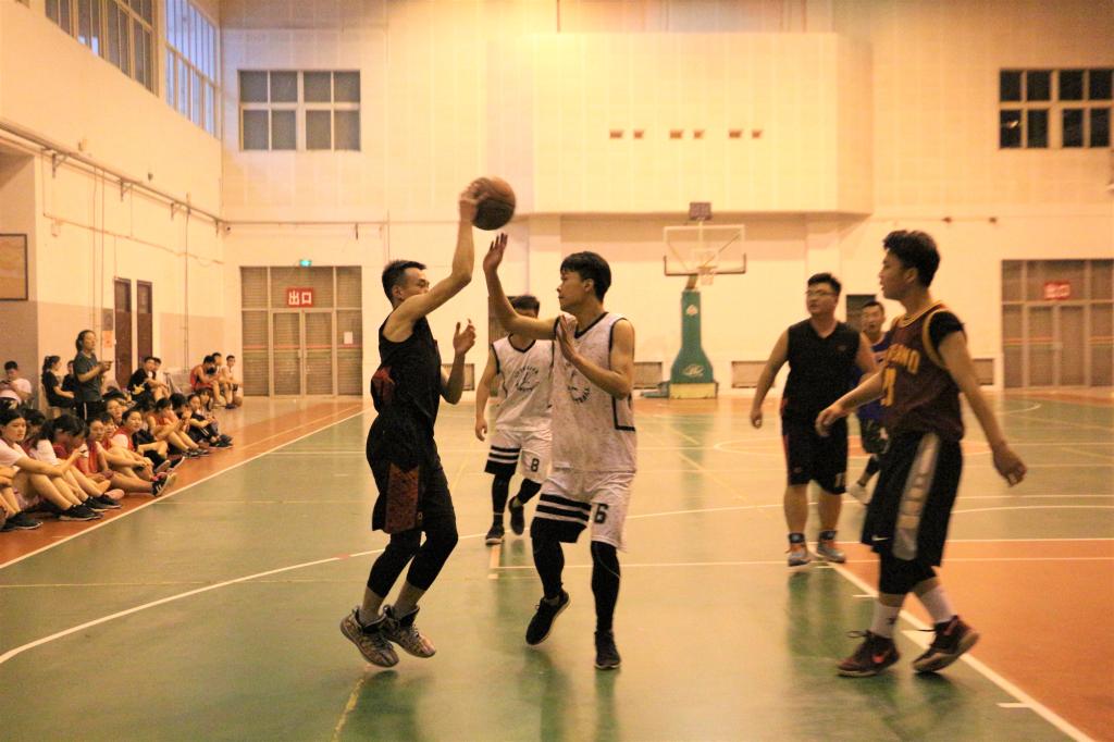 接着,篮球赛正式开始,大三大四篮球队员为一队,大二大一篮球队员为一队,首先是男篮对打,其次是女篮对打,时长各为一小时。高年级的实力果然不容小觑,在比赛过程中全情投入,以压倒势进球,赢得比赛的胜利,并且,每次进球都能引起阵阵欢呼和掌声,振奋人心。