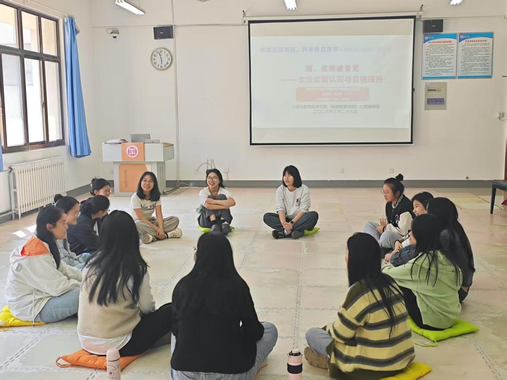 为帮助女大学生增强自我认同,提升自信心,探索独特的女性力量,3月12日至26日,BB贝博艾弗森官方网站(初等教育学院)在教师教育楼15-312和16-206教室举办了三期主题为“她,值得被看见——女生自我认同与自信提升”的团体心理辅导活动。活动由学院心理辅导站暖昕艺术心理工作室朋辈心理辅导员张蕊、钟欣然、张霁昕轮流带领,吸引了50余名女生积极参与。