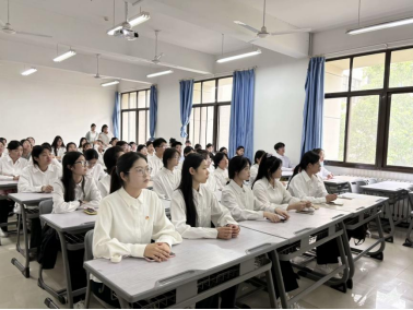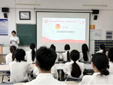 张玉洁代表学院团委,向光荣入团的新团员们致以最热烈的祝贺,强调了加入共青团对于青年大学生的重要意义。她指出,新时代团员青年应该以更高标准要求自己,将个人理想融入党和国家事业发展的壮阔蓝图中。既要学习专业知识,提升专业能力,又要在社会大课堂中锻炼成长,服务社会,为实现中华民族伟大复兴的中国梦贡献青春力量。