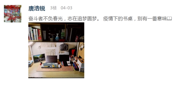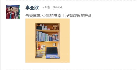 疫情防控期间,我院积极响应学校有关“停课不停学”的号召,开启“云课堂”在线授课模式,书桌已成为最忠实的陪伴者,也承载了一段静美时光。我院易班工作站在线大力宣传,本次“最美书桌”云之旅评比活动得到了学院同学们的积极响应。同学们通过易班APP扫码进入活动页面,阅读活动指引后在评论区展示自己书桌的照片并用文字讲述着书桌的故事。他们充分发挥自己的聪明才智和创造能力,用心“打扮”着属于自己的书桌。通过不同角度的拍摄,同学们将自己“书桌小天地”的精彩形象展现在我们眼前。在同学们上传的每一张照片之中,都展现出了同学们的品味喜好、生活习惯以及积极的学习态度,为在线教学的顺利开展奠定了良好的基础。最后,经过综合评选,十余名同学获得此次“最美书桌”活动的奖项。