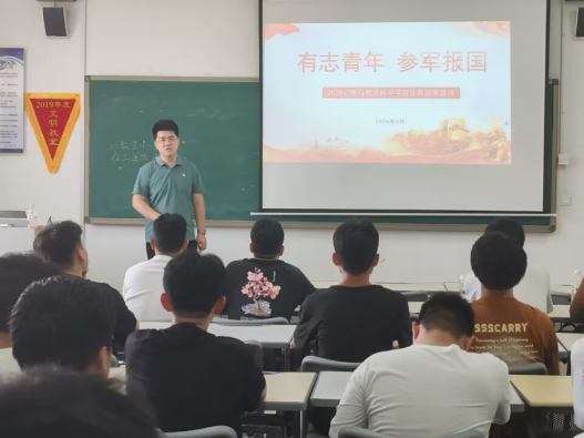 为强化大学生国防观念,号召适龄青年参军入伍,6月12日下午,BB贝博艾弗森官方网站在教师教育楼310室召开2024年征兵动员宣讲会。活动由征兵工作负责人李长蓬主持,退伍大学生李响、李杰、马丽雯担任宣讲人,学院全体男生参加。