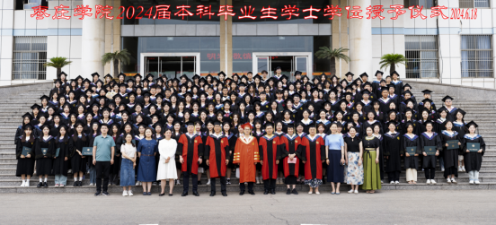 学士学位授予仪式结束后,全体人员在综合楼前合影留念。