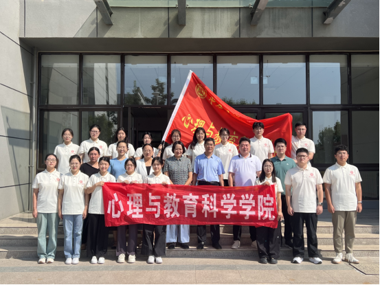 会后,与会领导、教师与支教团学生在教学楼前合影留念,