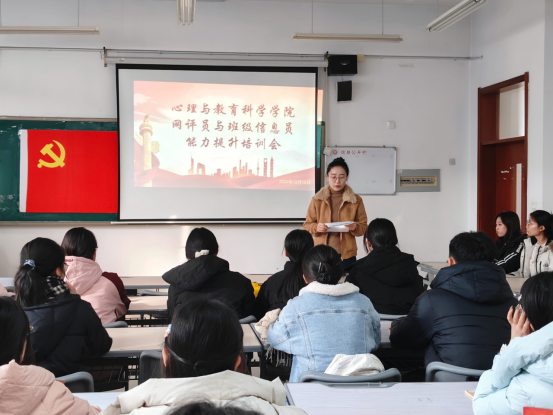 培训会上,张丽嫱首先就网络信息员、网络评论员的工作重要性进行了说明,并向参训学生干部宣读了国家互联网信息管理“七条底线”“九不准”的法律规定,详细介绍了网评员和班级信息员的关键职责,还通过实例分析,就如何加强网评员在校园舆情引导与应对方面的能力进行了生动的阐述。她希望参会学生能够准确、迅速地传达学院的声音,真实反映同学们的意见和需求,从而构建起学院与学生之间坚实的沟通桥梁。一要提高自己的思想政治素质和政策理论水平,要坚持发表正面言论,坚守意识形态阵地,进行积极的正面引导和主流的舆论宣传;二要明确岗位职责,更要充分认识宣传思想文化工作的重要性。