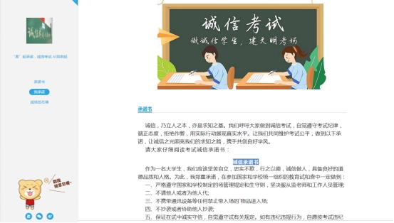 本次活动通过易班轻应用线上活动方式,利用易班网络平台打破时空界限互联互通、共建共享,共同打出思政育人“组合拳”。活动共分为线上“承诺书”、“我承诺、“诚信签名墙”三个环节。让同学们认识到“诚信”在日常工作、学习、生活中的重要性,打消了考试作弊心理,在同学们的心中画出“抄袭作弊不可取”这一道不可逾越的红线。