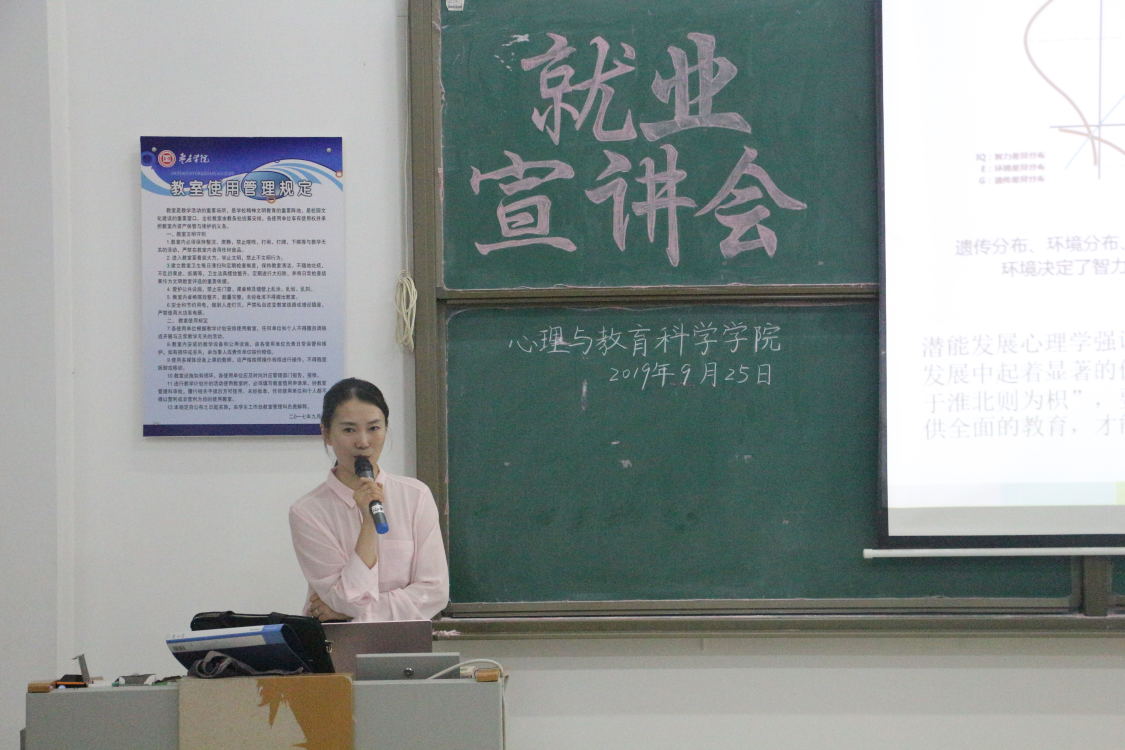 9月25日下午,BB贝博艾弗森官方网站于教师教育楼216室召开就业宣讲会。山东鹏泰鸿丰投资有限公司负责人、北京金色摇篮潜能开发婴幼园(台儿庄区)园长进行宣讲,我院学前教育专业学生参加。