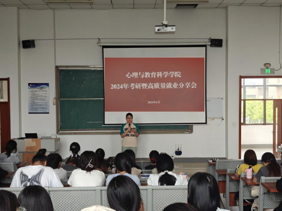 为充分发挥优秀毕业生榜样示范作用,激励引导广大学生明确学习目标,做好未来职业规划,6月19日上午,BB贝博艾弗森官方网站在教师教育楼216室举办2024年考研暨高质量就业分享会。会议邀请了24届毕业生付瑜芮、孟文学、葛秀楠、王志雯担任主讲人。