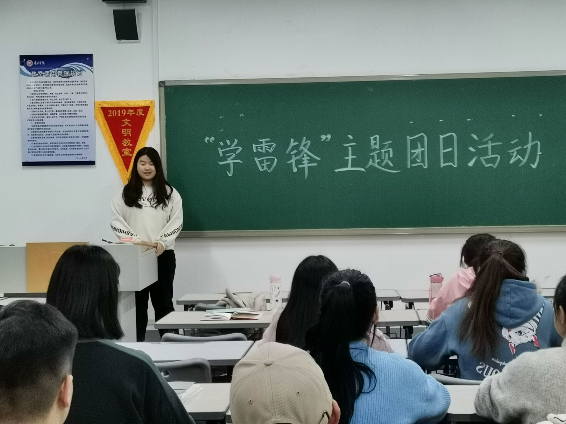 首先,各班团支书向同学们讲述了雷锋的生平事迹及“雷锋纪念日和雷锋月”的由来,引导同学们了解雷锋精神。同学们认真聆听,做好记录,加深了对雷锋精神时代内涵的理解。接着,同学们结合自己的亲身经历,讲述身边的好人好事,传递向上向善的正能量。