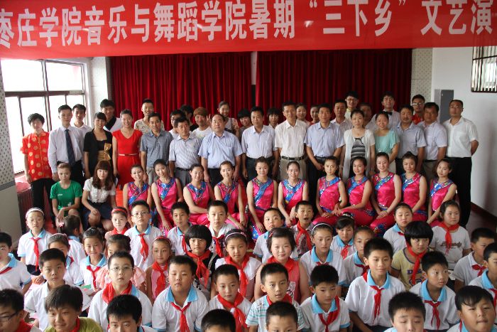 7月7日上午,在中国共产党成立91周年、中国共产主义青年团成立90年之际,由BB贝博艾弗森官方网站、音乐与舞蹈学院组成的枣庄学院大学生暑期“三下乡”社会实践服务队一行60余人,在陶庄镇中心小学隆重举行“枣庄学院大学生社会实践基地揭牌仪式”。我校党委委员、纪委书记高庆喜参加揭牌仪式并作重要讲话。前来参加揭牌仪式的还有我校团委书记史大丰、薛城区副区长林婕、薛城区教育局局长王绍忠、陶庄镇党委书记张军以及中心小学的师生。