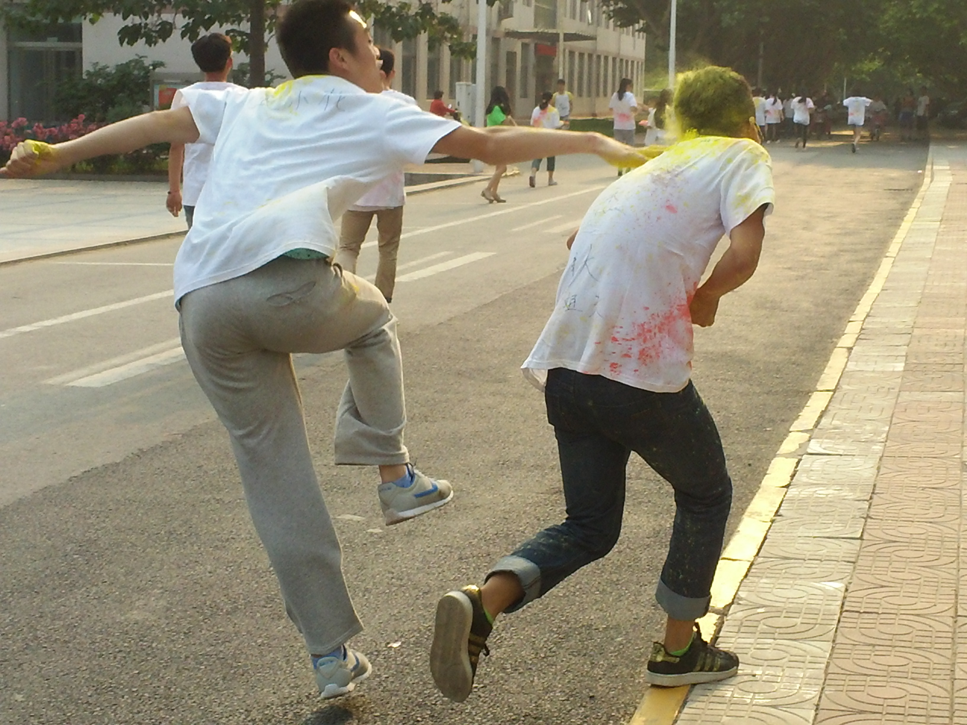 该活动吸引了全校百余名师生的关注和广泛参与,其中BB贝博艾弗森官方网站教师集体出席。开幕式上,曾书记致开幕词,此次活动共分为三个阶段,首先由参赛选手自由分组并选出队长;接下来工作人员发放T恤,由各选手互相在T恤上写上自己想说的话;最后开始炫跑,本次炫跑从田径场西侧出发,沿途经过校门口、墨子楼、图书馆多个站点,站点分设问题障碍并由专门人员在相应地点撒播彩粉,以示祝福。在全体参赛人员跑回起点后,活动圆满结束。