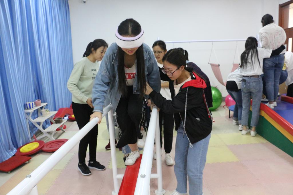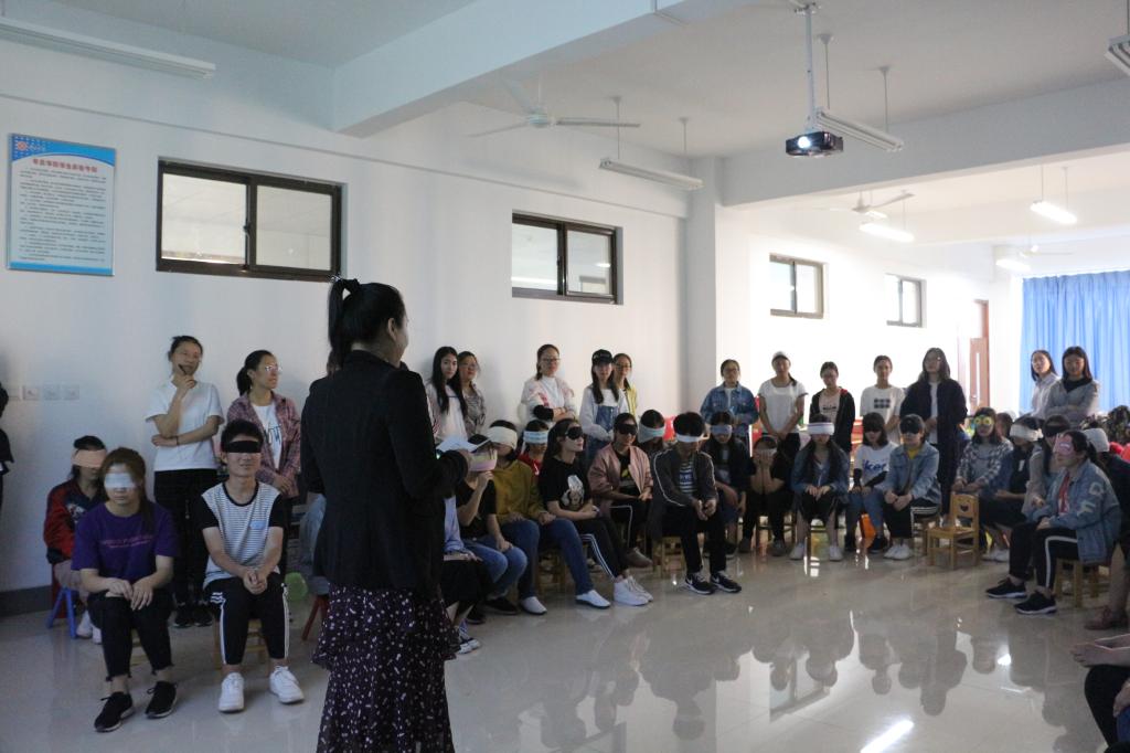 在第二个部分“感受爱的陪伴”里,该班辅导员带着全体同学进行了团体心理辅导活动,全班同学在感统训练室里携手一起走过了一条“成长之路”,失语者和盲人相扶越过艰难障碍。活动过后,辅导员在较暗的环境中借助朗诵的形式和同学们一起回顾了刚刚走过的艰难“成长之路”,从社会、朋友、老师、父母等方面为同学们讲到了爱心、责任、信任、尊重、感恩等思想道德素质。从国家和学校对成绩优异和家庭经济困难同学们的资助等方面渗透了资助政策,使同学们感受到了爱的陪伴。接着,接受过奖助学金资助的同学们自发表达了感恩之心,通过系列活动,他们感受到了国家和学校的关爱和帮助,立志在将来要用实际行动回报国家和社会。最后,同学们齐唱班歌《相亲相爱》结束了本次活动。