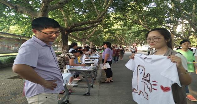 2018年6月6日,BB贝博艾弗森官方网站心理健康协会在枣庄学院小广场举行了涂鸦设计大赛。指导老师孔祥武和公长伟进行现场点评和指导。