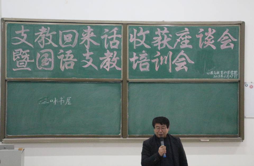2月27日上午,我院于15-217室召开支教回来话收获座谈会暨国语支教培训会,党总支书记赵荣军、院长傅金兰、党总支副书记宋明峰、各班辅导员出席会议,2018年支教归来学生与2019年即将支教学生参加。