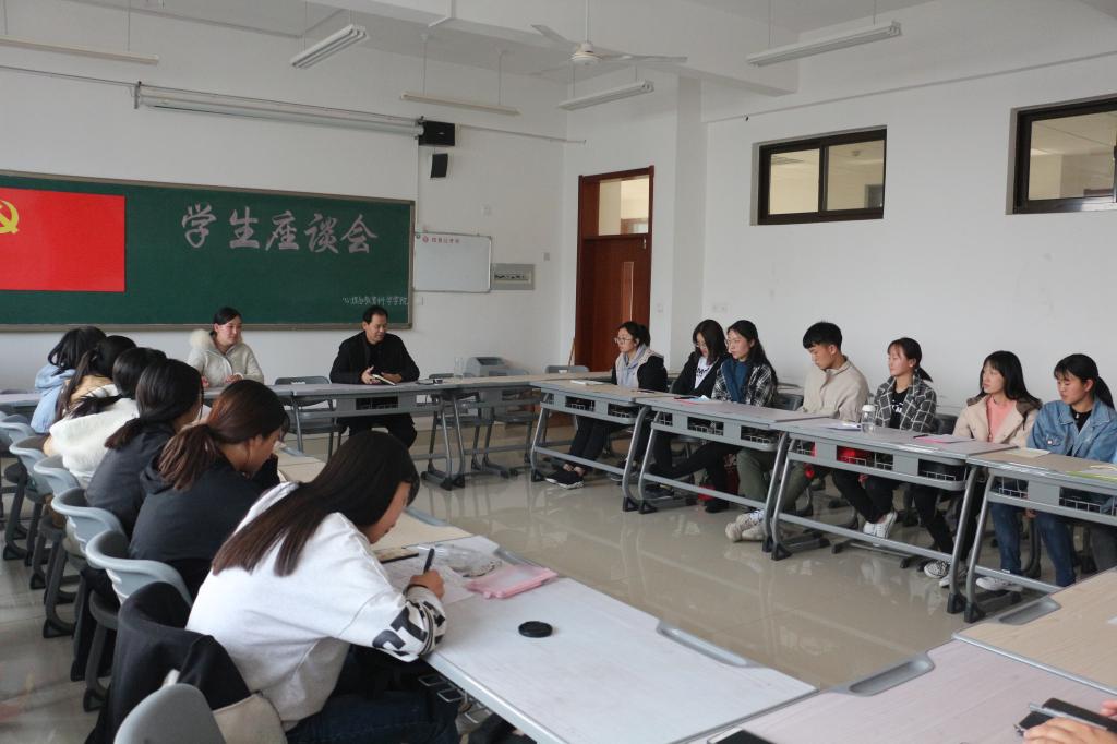 3月28日下午,BB贝博艾弗森官方网站于教师教育楼302教室召开学生座谈会。会议由学院党总支副书记宋明峰主持,团总支副书记张玉洁、各班学生代表参加。