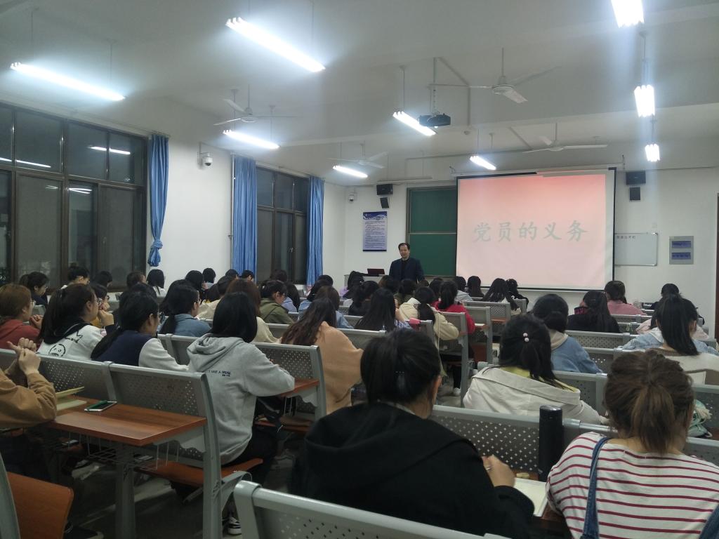 4月15日晚,BB贝博艾弗森官方网站党总支副书记宋明峰在教师教育楼205教室对入党积极分子进行党课培训。
