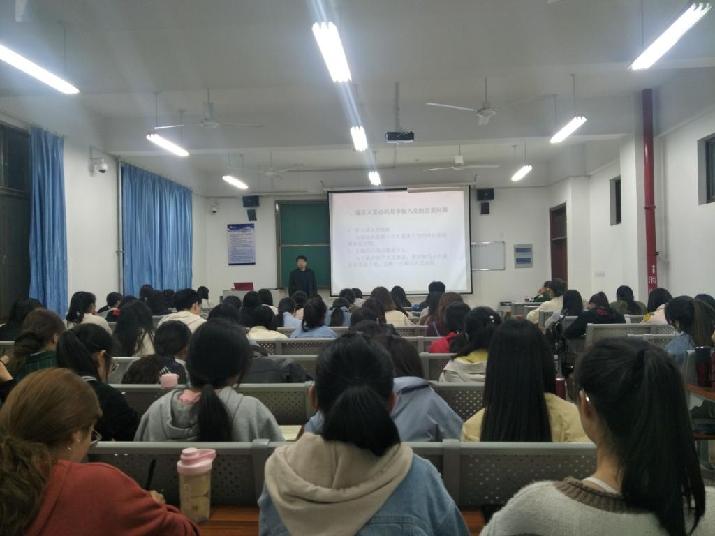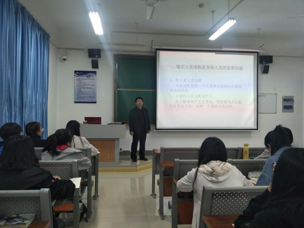 4月16日下午七点,BB贝博艾弗森官方网站党总支书记赵荣军在教师教育楼205教室对入党积极分子进行党课知识培训。