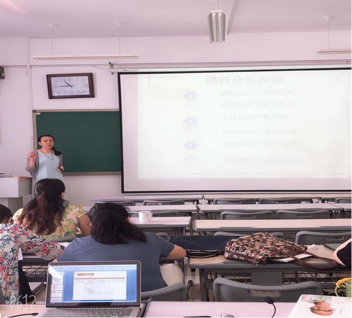首先开始的是专业剖析活动。傅金兰院长和全体专业教师参加。小学教育和学前教育专业的汇报人模拟真实汇报情境,先后演练了本专业的专业剖析;其他人员同时进行观摩并填写专业剖析评价表。在演练观摩后的研讨环节,参与人员畅所欲言、集思广益,对演练的薄弱、模糊或疑问之处进行查漏补缺、清晰指出、互通有无,尤其对各项指标体系的内涵、办学特色和亮点等方面进行了明确和凝练。其后是分两组并行的课程分析活动。小学教育和心理学组由傅金兰院长带队,学前教育组由安洪涛老师带队。在演练环节,教师多按照评估要求、参照真实评估场景,精心准备、细致打磨,一一上台汇报各自课程的性质和地位、目标和教学设计、重难点把握及突破、教学方法与手段、教学效果与特色等方面,其他教师同时认真观摩并填写课程分析评价表;在研讨部分,教师们对汇报的内容、形式,对小到文字和PPT格式,大到对课程分析的整体要求,都有针对性地提出了完善建议。