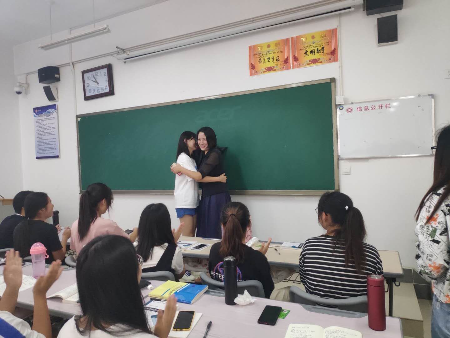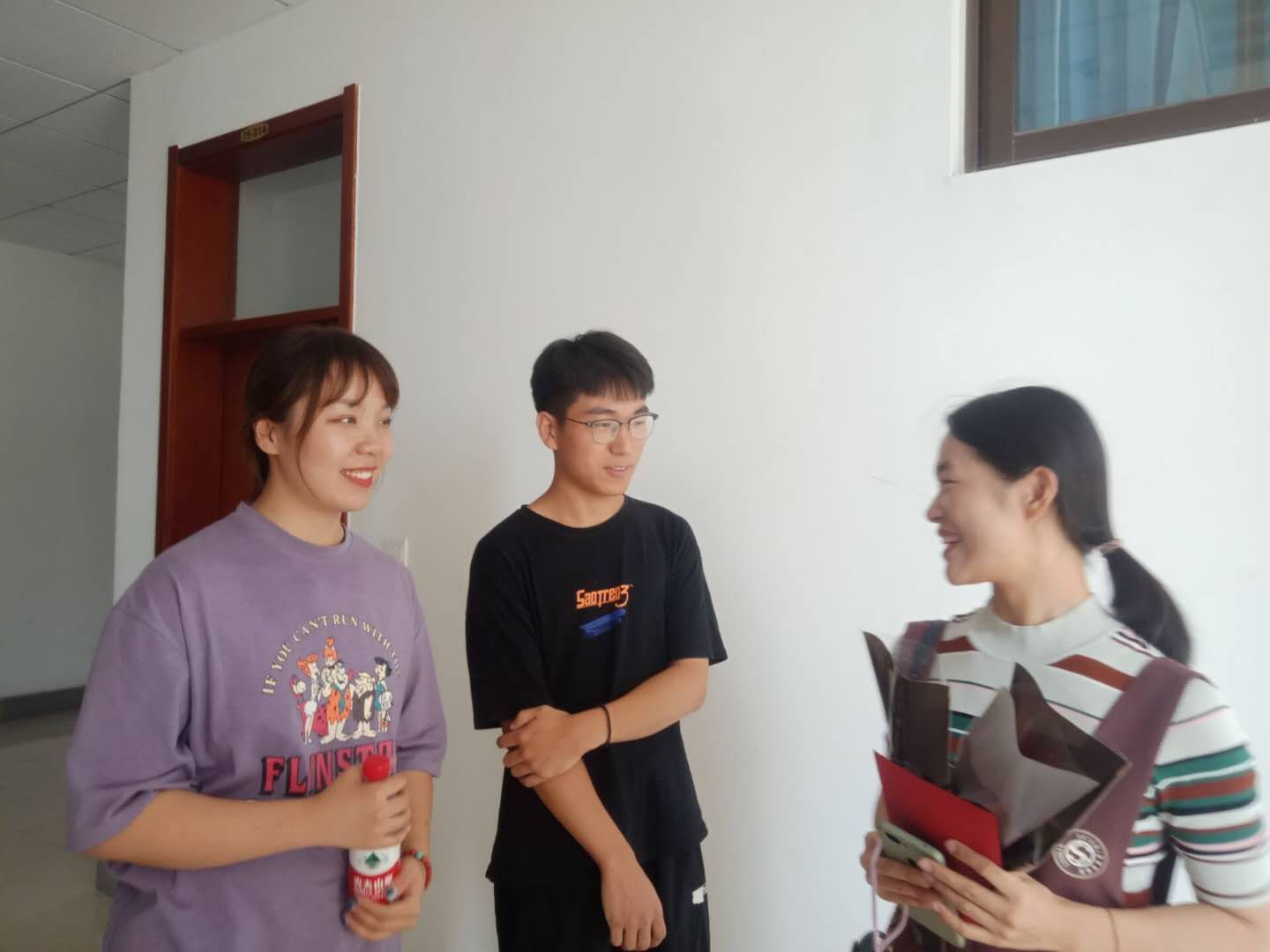 各班分别召开班会,班长向同学们介绍“五个一”的具体内容,即以班级为单位,给老师送一瓶水、献一朵花、送一张贺卡、发一条信息、送一句问候。大家进行交流讨论,提出自己关于活动的想法。随后,各班班长、团支书作为班级代表来到办公室,给学院领导、教师送上水、鲜花和贺卡,对老师们的辛勤付出表示感谢。