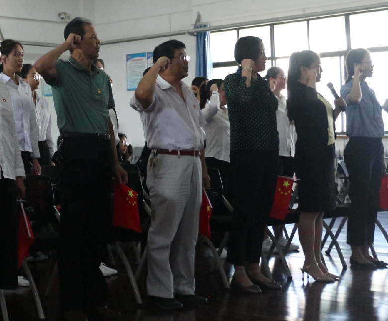 本次活动共分为合唱国歌,重温入党誓词,观看“不忘初心、牢记使命”主题教育视频,知识竞答,全体诵读《不忘初心》,合唱《我和我的祖国》和领导讲话七个环节。