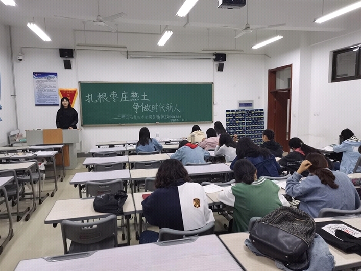 首先,各班团支书介绍了近几年枣庄市经济发展情况,并列举前几届学生建设枣庄的优秀事例。接着,团支书鼓励同学们毕业后扎根枣庄,为枣庄发展做出自己的贡献。不仅要做枣庄发展的见证者,更要做枣庄发展的参与者,推动者。最后,同学们进行讨论交流,大家纷纷表示,我们要珍惜人生中最美好的时光,增强各方面本领,提高个人素质,力争成为枣庄未来发展的中坚力量。