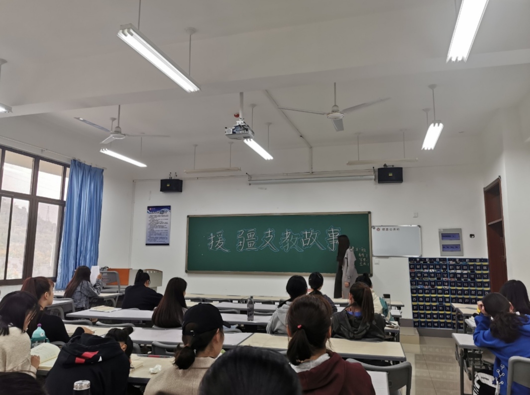 首先,各班班长介绍了援疆支教政策以及我校支教学生赴喀什地区疏勒县支教的现状。然后,在班长的带领下,同学们一起阅读支教日记,深切体会到喀什地区教育资源尤其是汉语教育的薄弱和亟待发展的紧迫,提升了对援疆支教的热情和责任感。最后,同学们进行了交流讨论,大家纷纷表示:“作为青年人,我们要有担当意识和奉献精神,学好科学文化知识,努力提高个人素质,日后积极投身到祖国需要的地方。”