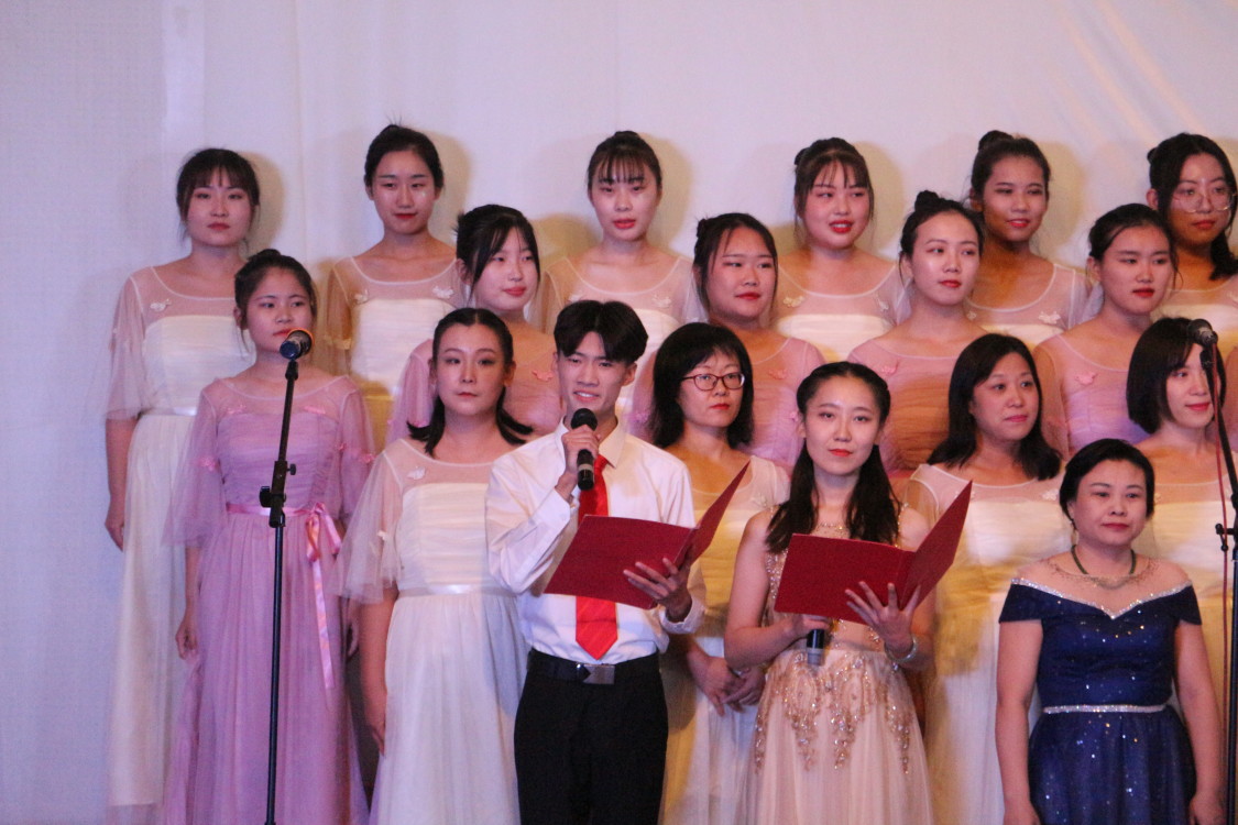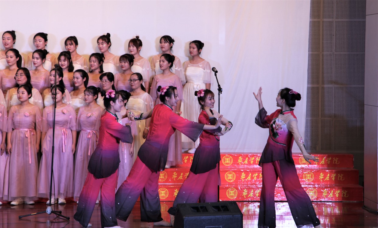 来自各二级学院和机关的21支合唱团依次上台表演,我院合唱团第十四个出场,带来了《党啊,亲爱的妈妈》和《洪湖水,浪打浪》两首歌曲,把对祖国和党的热爱寄托其中,用真挚的歌声诉说着对党崇高的敬意,弘扬了社会主旋律。同时,在歌曲当中加入舞蹈表演,优美的舞姿与欢快的歌声相结合,用特色民歌纪念了那段充满传奇的革命时代。我院师生配合默契、情绪饱满,感染了现场的每一个人,赢得了观众的一致好评。