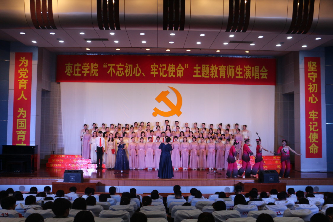 11月20日,枣庄学院于综合楼报告厅举行“不忘初心、牢记使命”主题教育师生演唱会,我院师生代表70人参加演唱。