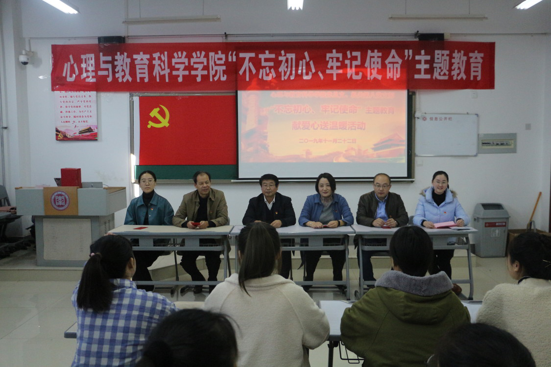 为了贯彻“不忘初心,牢记使命”主题教育工作安排,落实“两个一”工作任务,11月21日,BB贝博艾弗森官方网站在教师教育楼302室开展“两个一”主题党日活动,为家庭经济困难的学生献爱心、送温暖。会议由院党总支副书记宋明峰主持。
