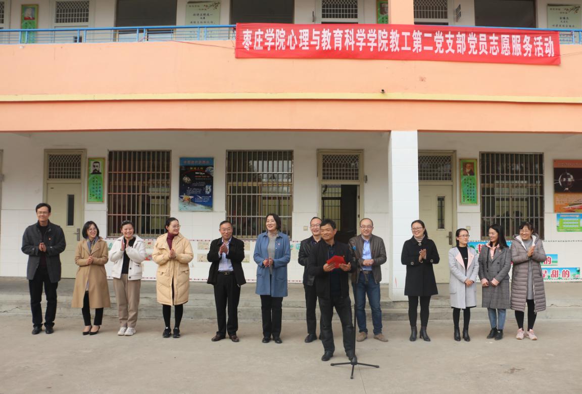 此次活动由院长傅金兰同志带队,支部全体党员教师和BB贝博艾弗森官方网站儿童剧团及舞蹈队部分同学参加,共计35人。出席此次服务活动的还有界河镇政府魏然主任、王惠惠主任,界河学区李广山主任,以及界河学区后枣小学的校领导和全体师生。
