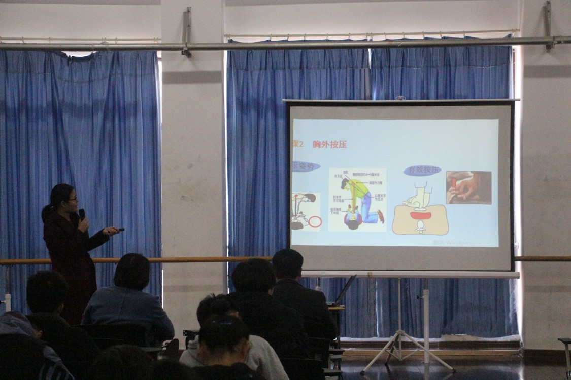本次讲座由我院实验室管理员纵颖、徐敏等主讲。首先,纵颖讲解了实验室中易发生的安全问题,包括用电安全、用水安全、消防安全与电梯应急安全等,分析了学生在实验室中存在安全隐患的行为,希望同学们日后能够改正、规范自己的行为。接着,徐敏强调了实验室安全预警方案的重要性,简要讲解了实验室发生事故的一般处置方法,并结合视频讲解了面对紧急情况时的处理办法。最后,师生们利用心肺复苏模拟假人,共同学习了在“黄金4分钟”内抓住救援机会,对昏迷者进行胸外按压和人工呼吸的方法。