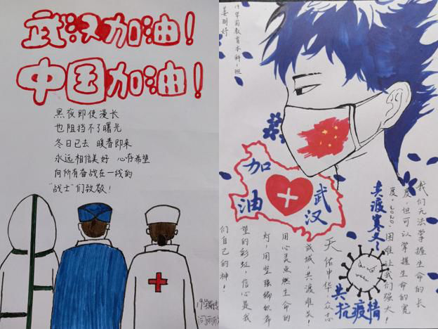 易班工作站负责人张丽嫱组织易班工作站携手学生会宣传部制作手绘作品,“携手战疫,易起加油”,为武汉加油。